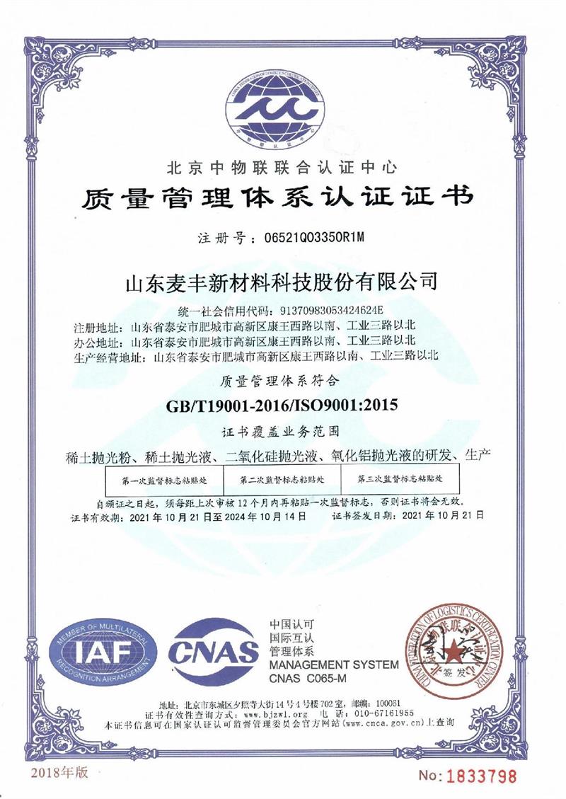 9001認(rèn)證證書